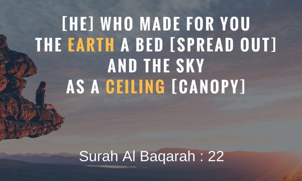 In Chapter 2, Verse 22, as well as Chapter 40, Verse 64 of the Qur’an, earth has been described as a resting place. If we try to understand it on a cosmic level or planetary scale, human beings are merely some tiny creatures resting on a giant rock called earth.