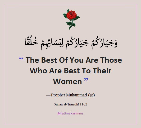 1. “The best of you are those who are best to their wives.” – Prophet Muhammad (ﷺ) [Sunan at-Tirmidhi: 1162, Graded: Sahih]