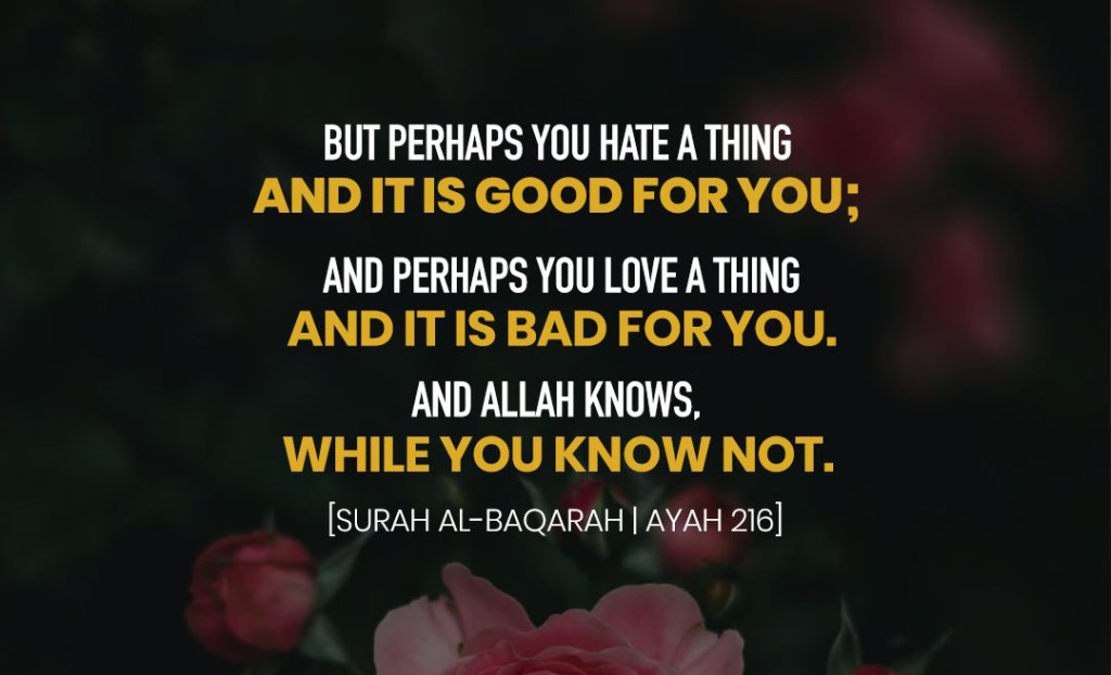 2.“But perhaps you hate a thing and it is good for you; and perhaps you love a thing and it is bad for you.” – Qur’an 2:216
